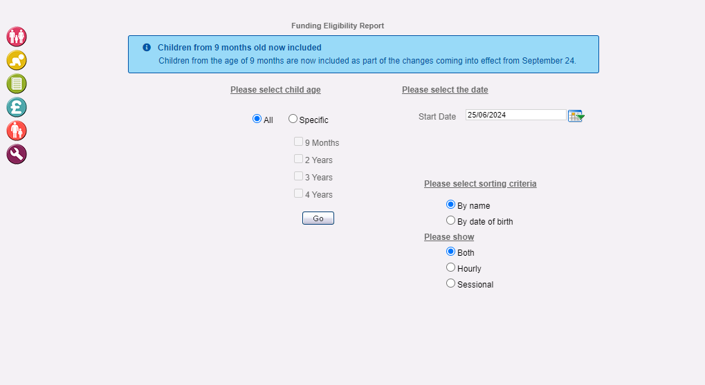 Children from the age of 9 months old will be included in the funding summary report. This includes a ‘9 Months’ age filter.